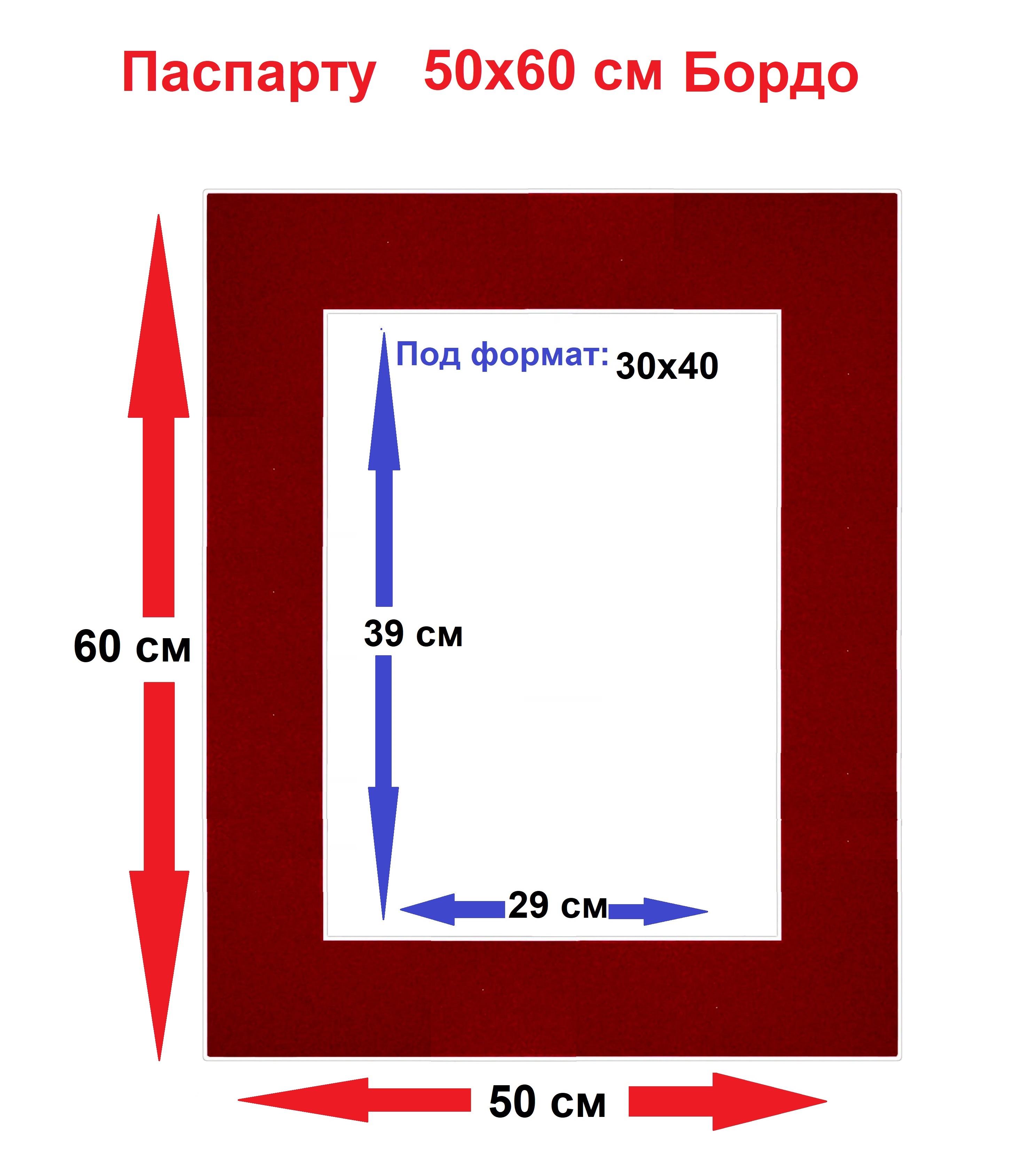 Паспарту бордо 50*60 под формат (30*40) 1 шт.