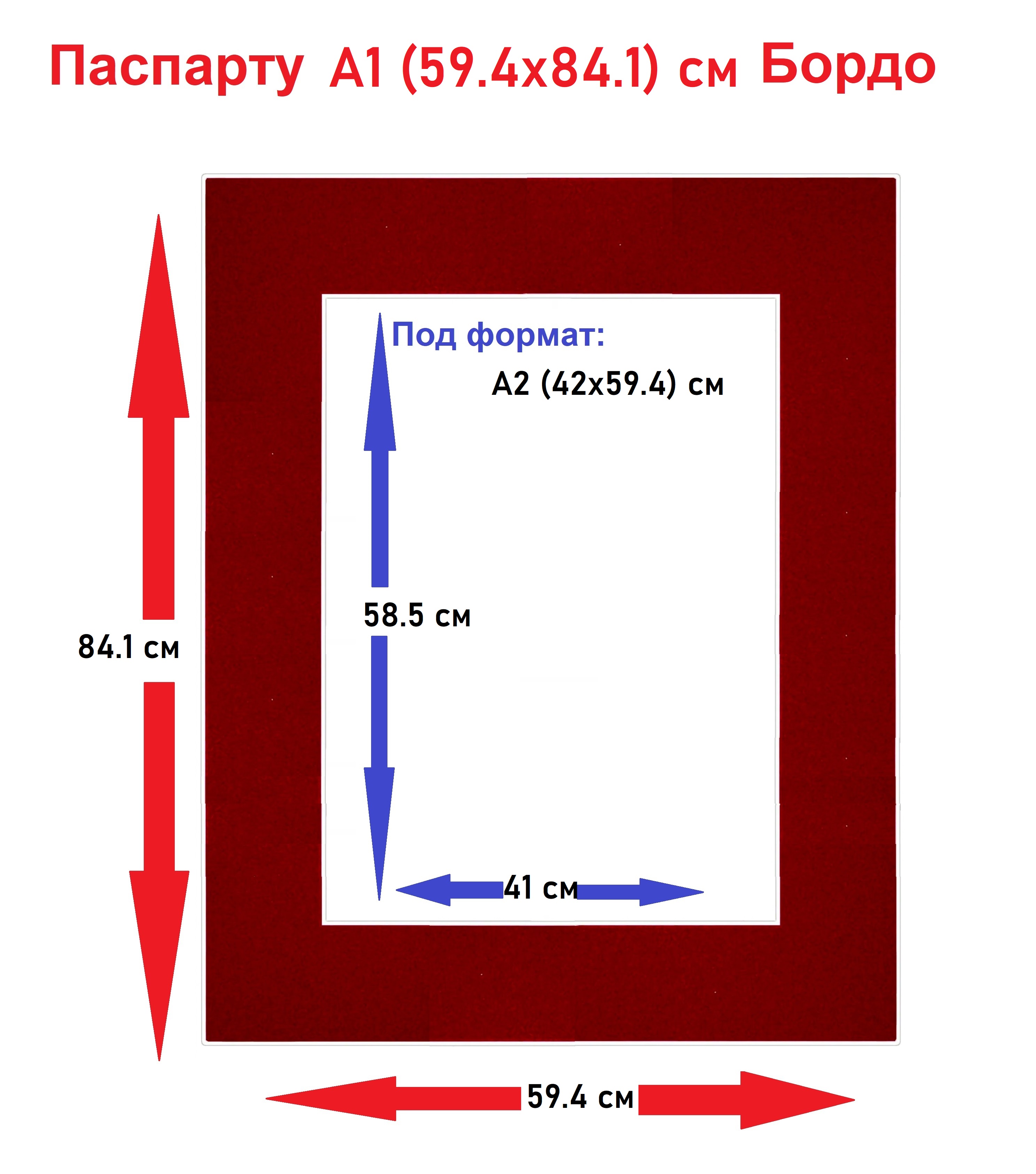 Паспарту бордо А1(59,4х84,1) / Окно А2(42х59,4) см