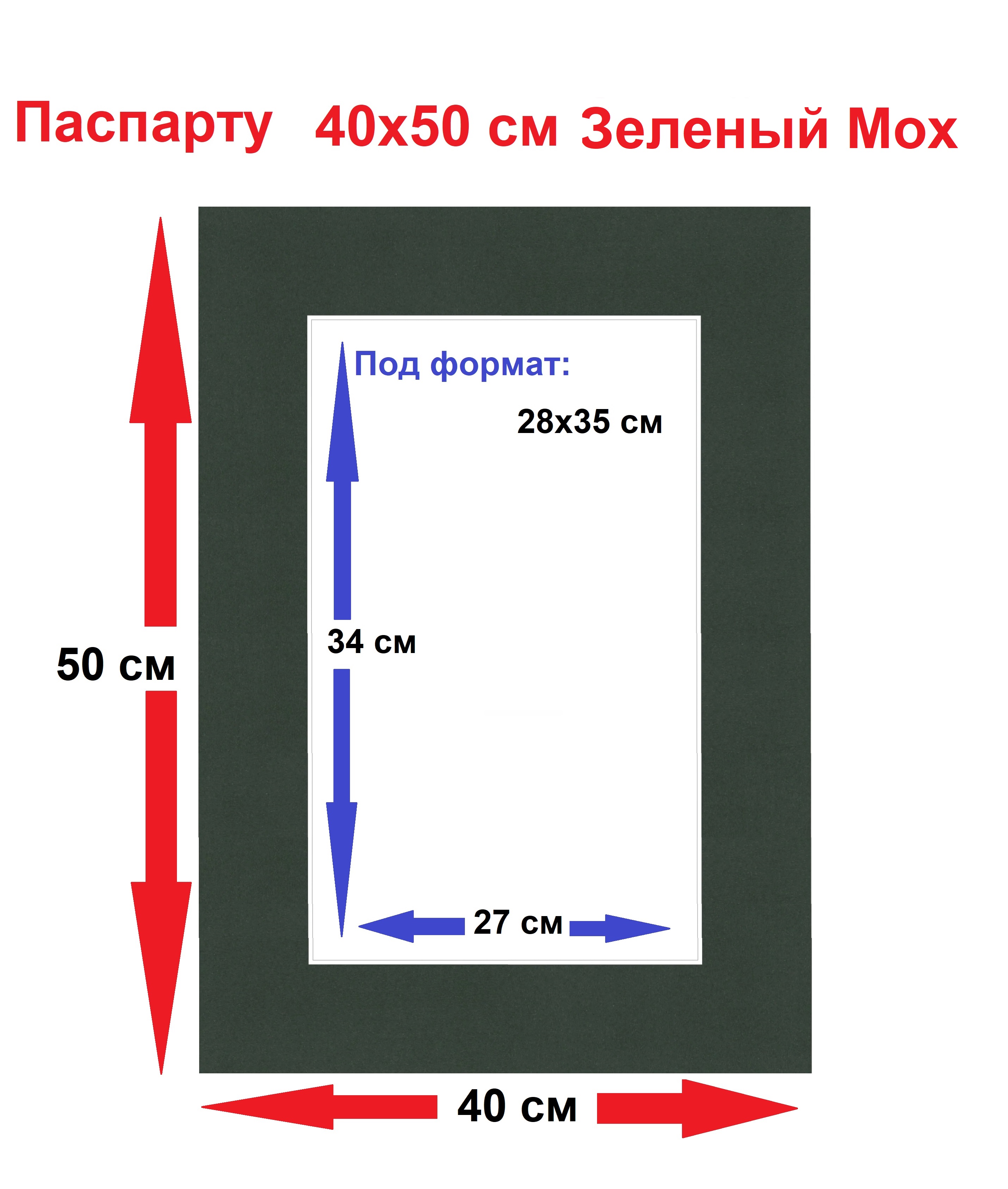Паспарту зеленый 40*50 под формат 28*35 см 1 шт. Цена: